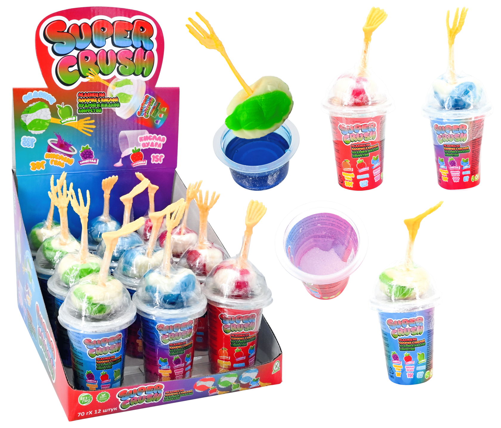 Леденец на палочке с кислой пудрой и жидкой конфетой SUPER CRUSH